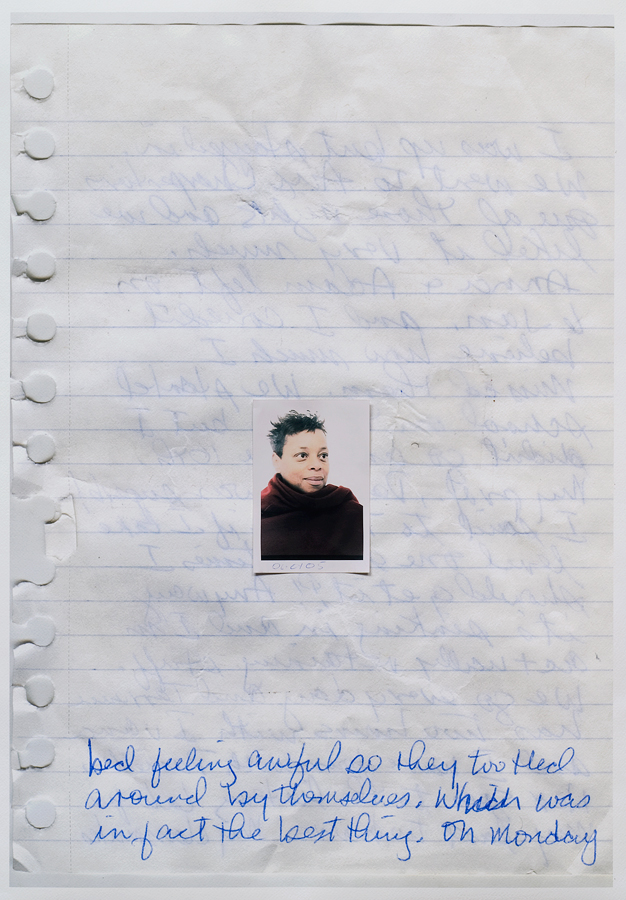 enlarged diary pages with photo-booth image collage, 84 x 61 cm